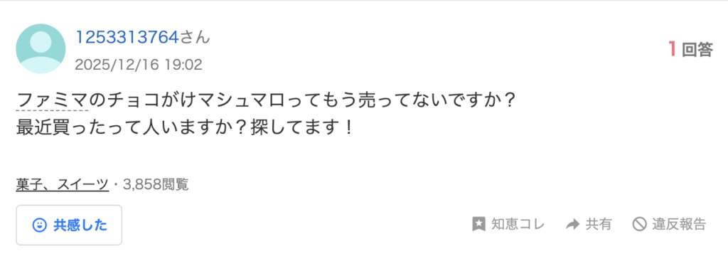 しかし『チョコがけマシュマロ』はわずか1ヶ月程で姿を消し、現在(2026年2月)も販売されていないようです。